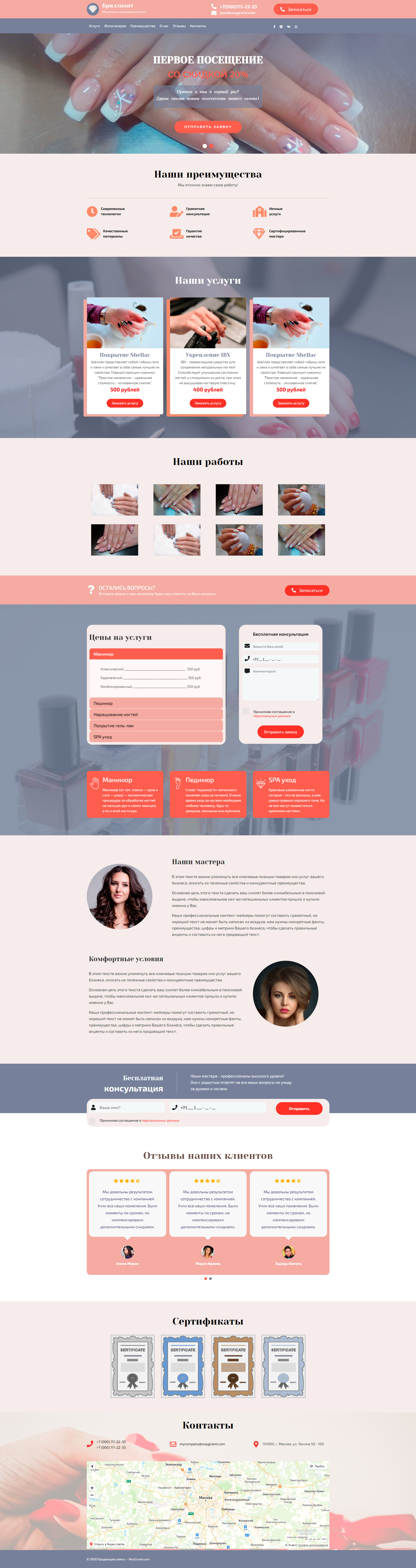 Закажите готовый продающий сайт лендинг #1107201 в Червени за 1-3 дня «под ключ»: свёрстан, отрисован и готов к рекламе. Тематика шаблона «Салон маникюра и педикюра».