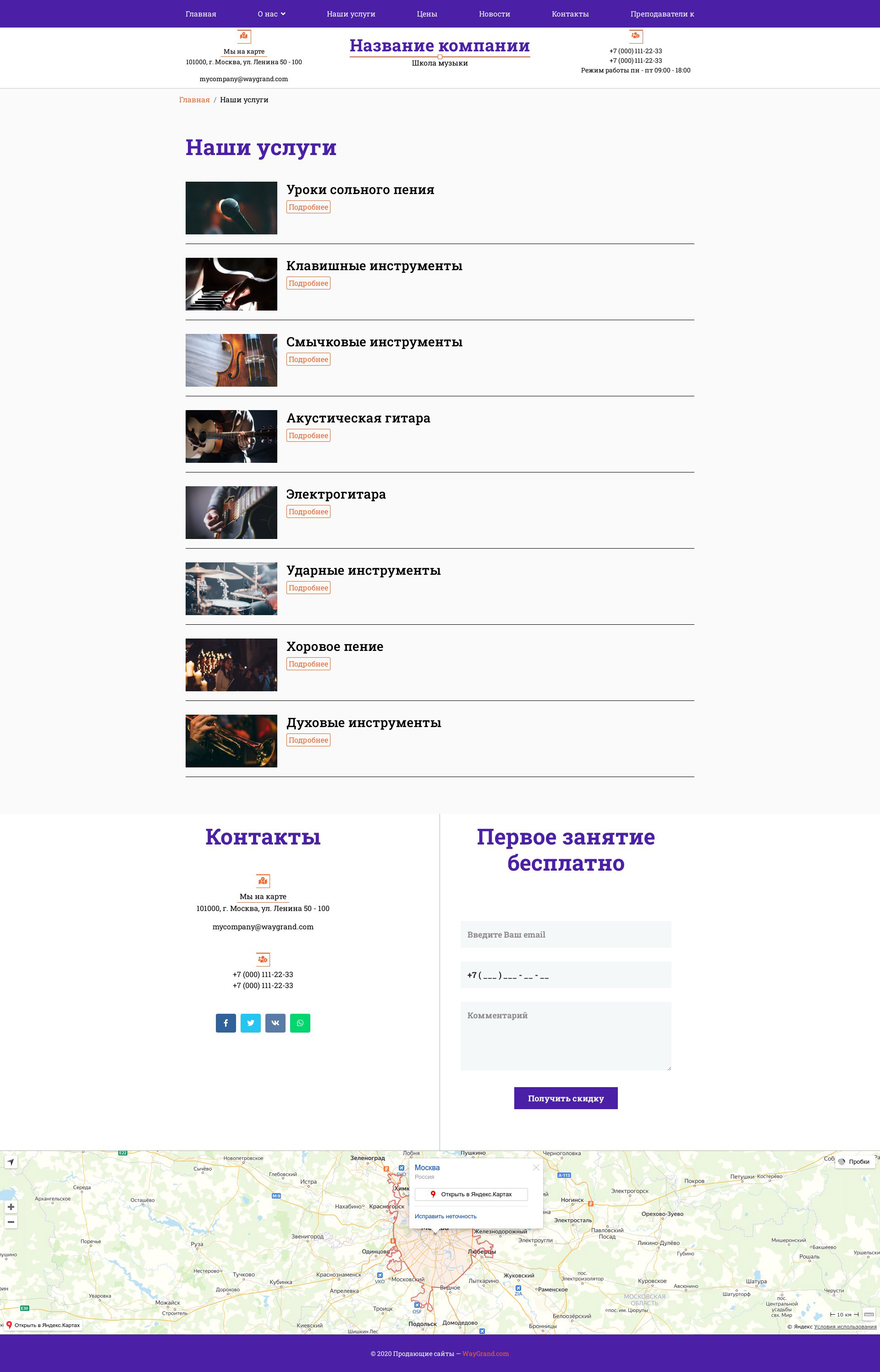 Закажите готовый продающий сайт визитка #1431301 в Червени за 5-7 дня «под ключ»: свёрстан, отрисован и готов к рекламе. Тематика шаблона «Школа музыки».