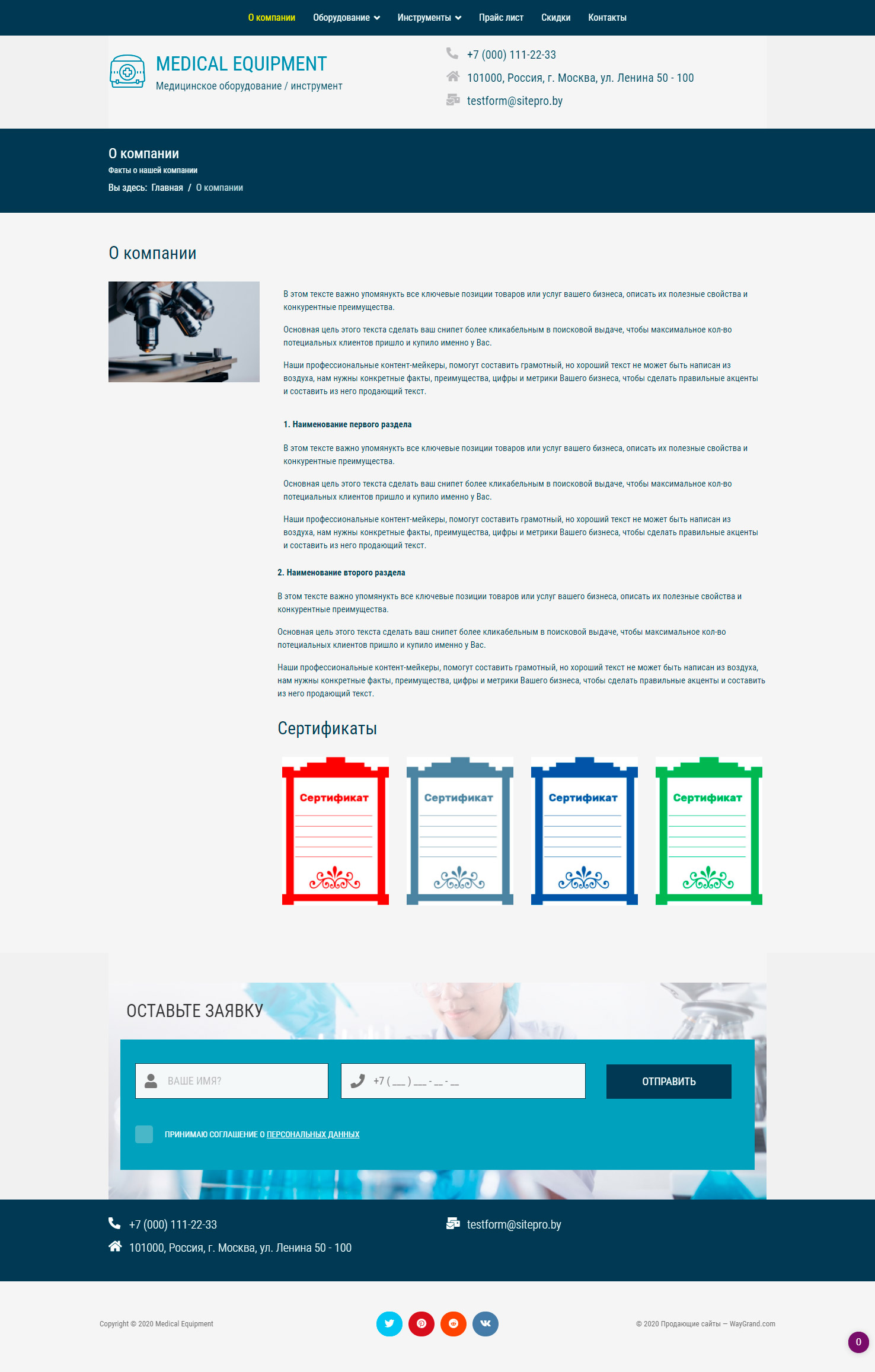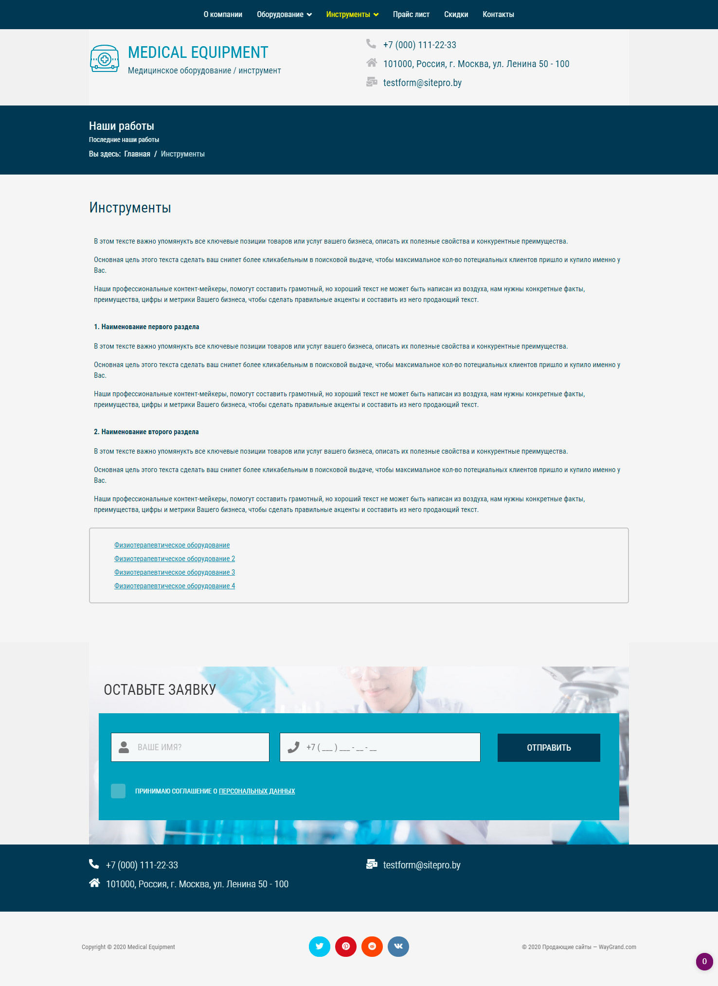 Закажите готовый продающий сайт визитка #1029301 в Червени за 5-7 дня «под ключ»: свёрстан, отрисован и готов к рекламе. Тематика шаблона «Медицинское оборудование / инструмент».