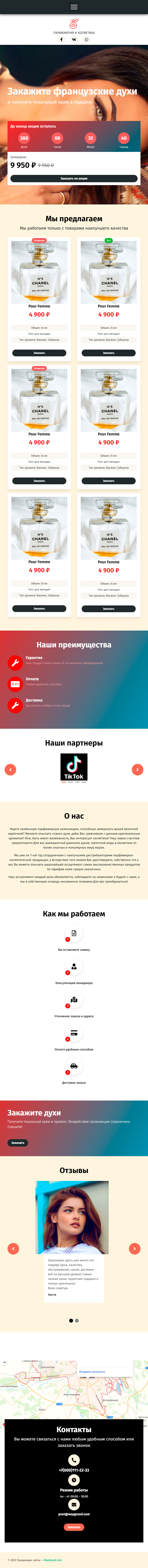 Закажите готовый продающий сайт лендинг #1102208 в Червени за 1-3 дня «под ключ»: свёрстан, отрисован и готов к рекламе. Тематика шаблона «Заказать французские духи».