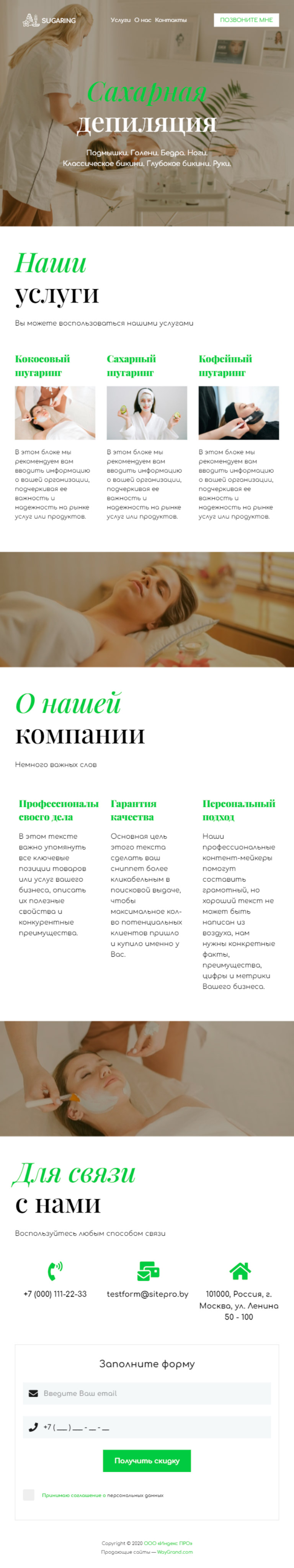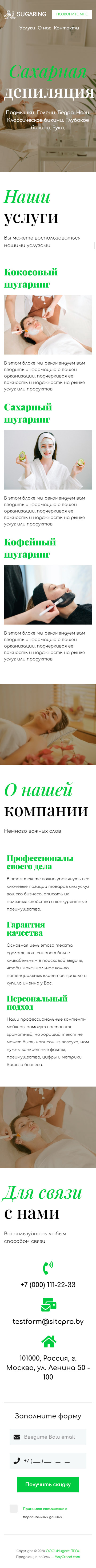 Закажите готовый продающий сайт визитка #1105101 в Червени за 5-7 дня «под ключ»: свёрстан, отрисован и готов к рекламе. Тематика шаблона «Сахарная депиляция/Шугаринг».