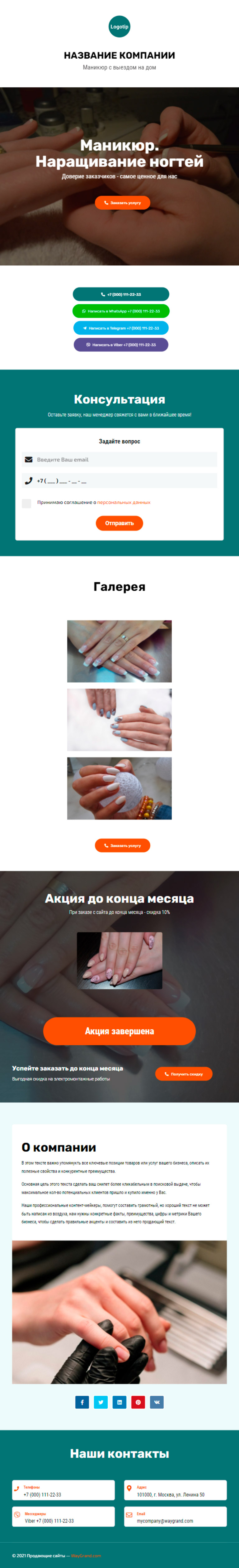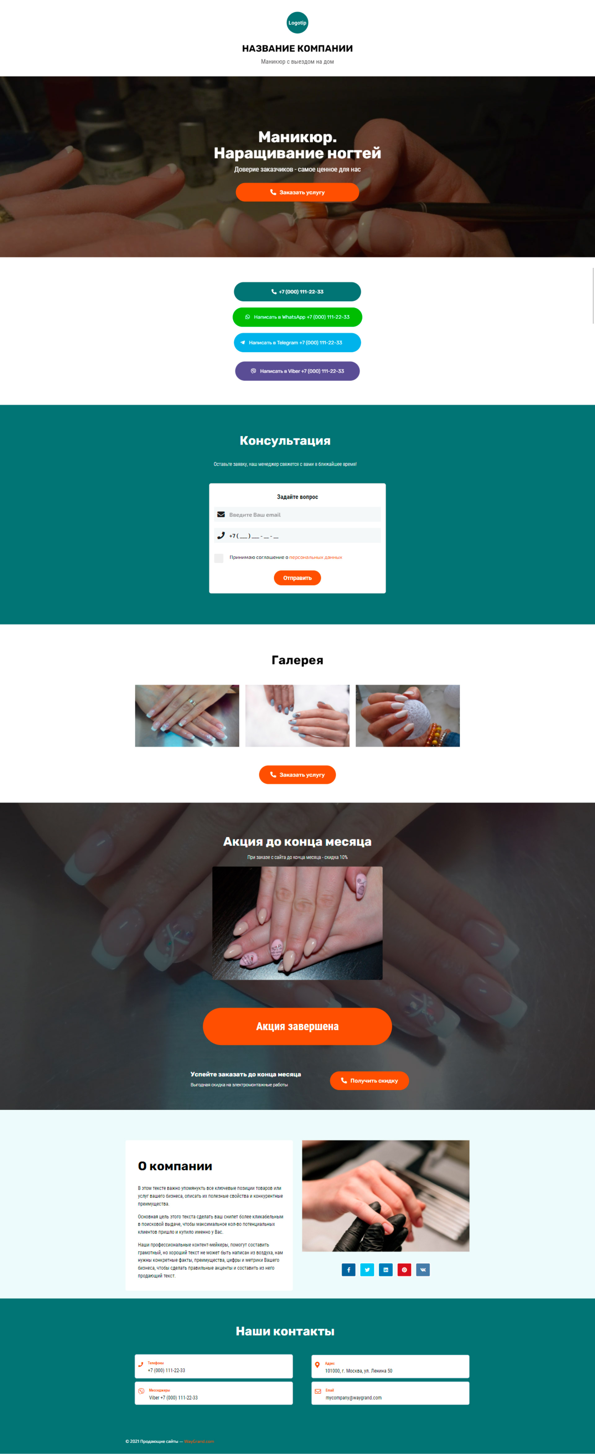 Закажите готовый продающий сайт визитка #1107101 в Червени за 5-7 дня «под ключ»: свёрстан, отрисован и готов к рекламе. Тематика шаблона «Маникюр. Наращивание ногтей».