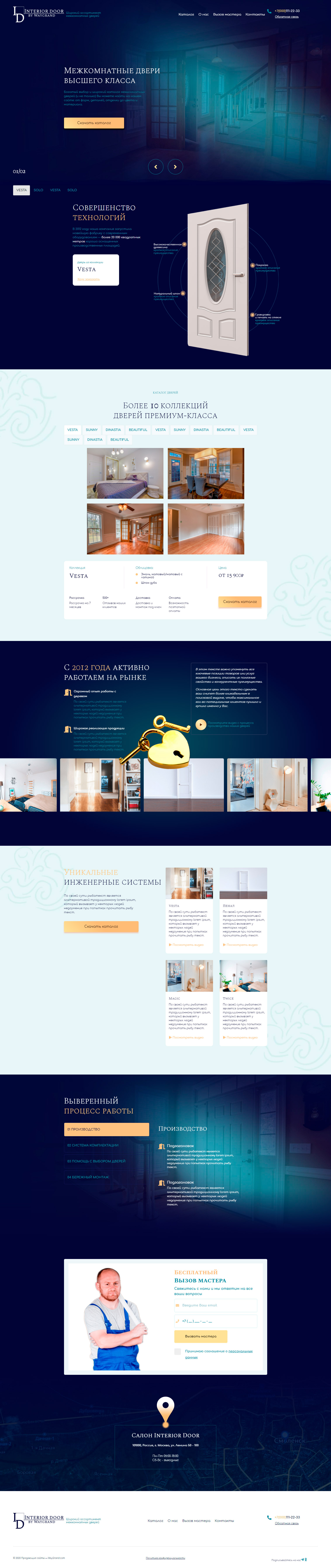 - Промоблок "Межкомнатные двери высшего класса" с кнопкой призыва к действию "Скачать каталог"
