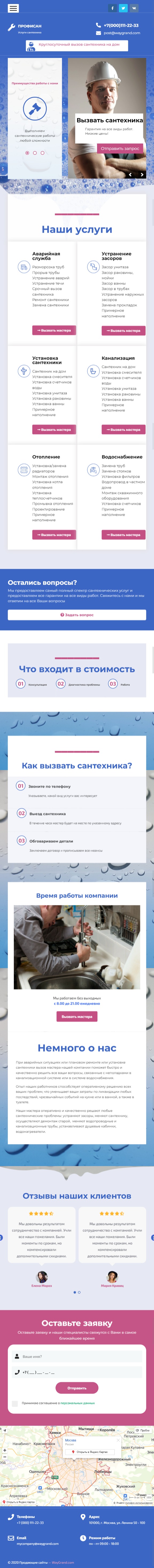 - Промоблок с формой "Вызвать сантехника"