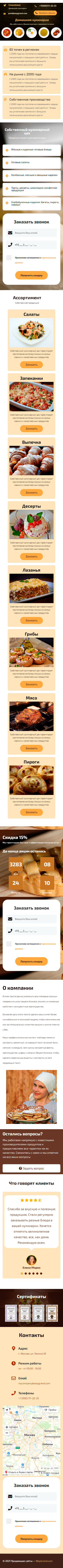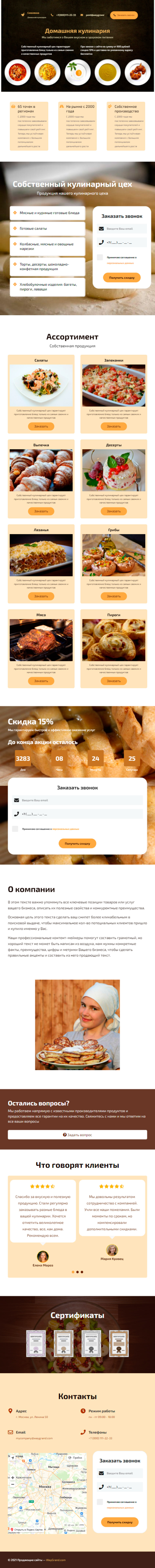 - Блок "Собственный кулинарный цех" с формой "Заказать звонок"