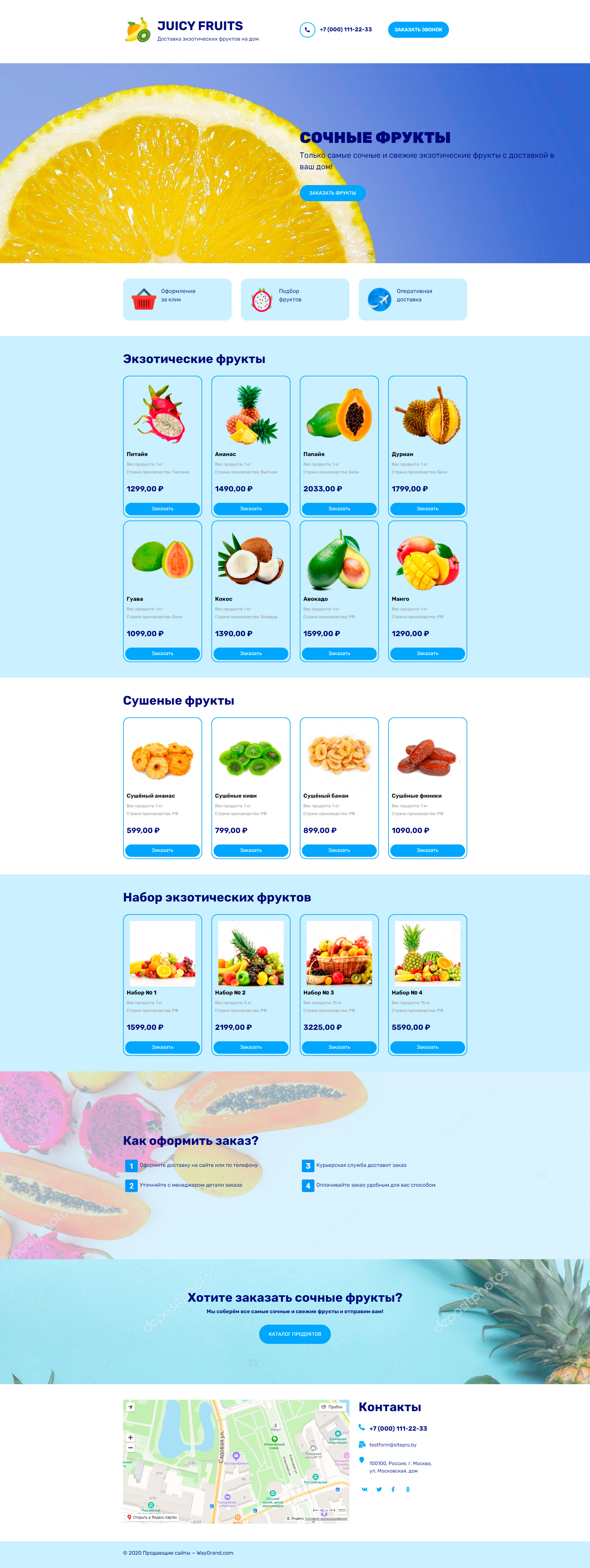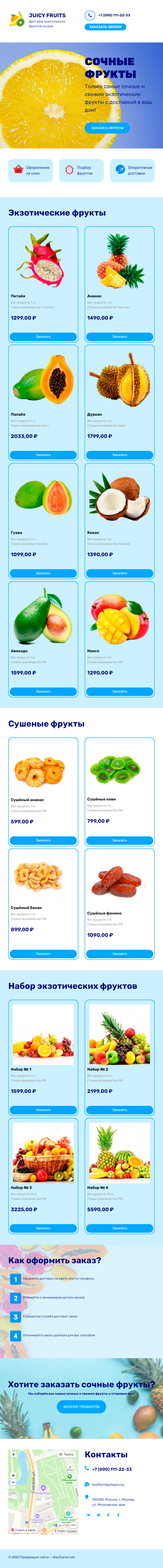 Закажите готовый продающий сайт лендинг #1723202 в Червени за 1-3 дня «под ключ»: свёрстан, отрисован и готов к рекламе. Тематика шаблона «Доставка экзотических фруктов».