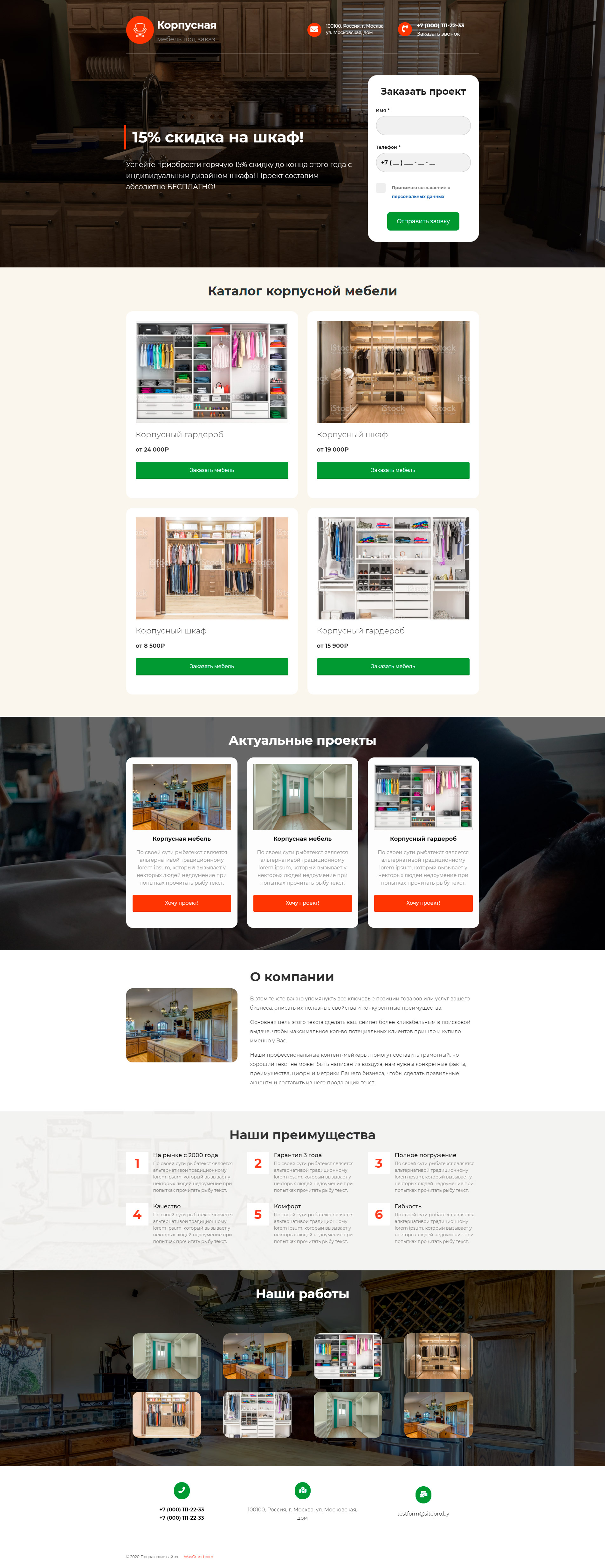 Закажите готовый продающий сайт лендинг #0915204 в Червени за 1-3 дня «под ключ»: свёрстан, отрисован и готов к рекламе. Тематика шаблона «Корпусная мебель».