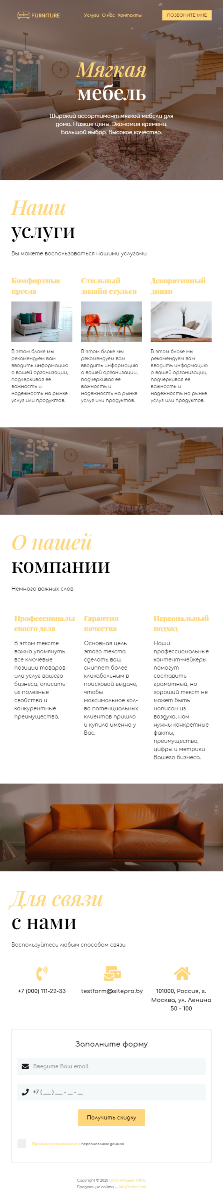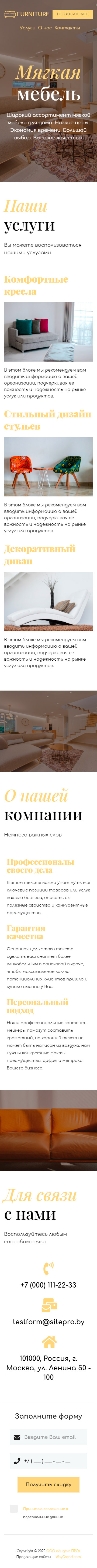 Закажите готовый продающий сайт визитка #0919101 в Червени за 5-7 дня «под ключ»: свёрстан, отрисован и готов к рекламе. Тематика шаблона «Мягкая мебель».