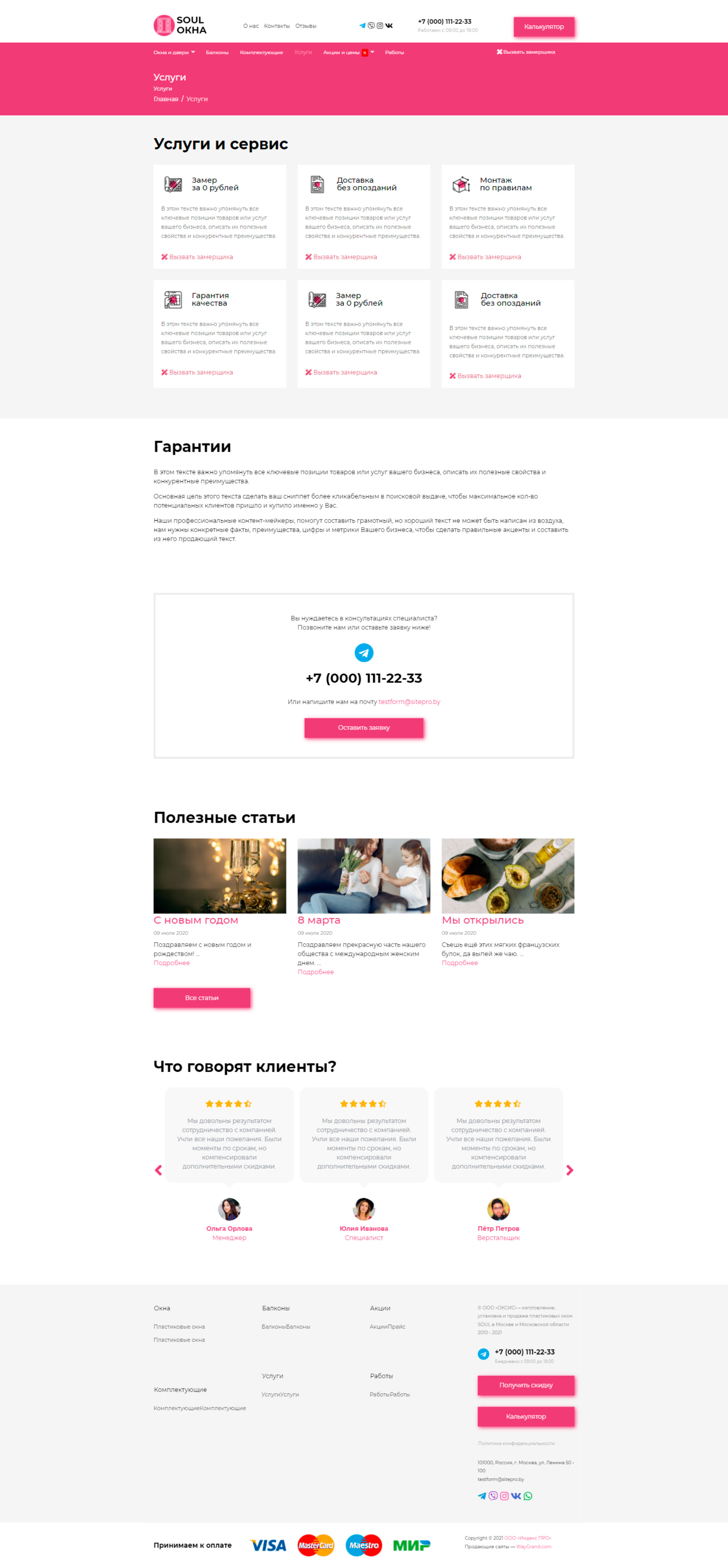 Закажите готовый продающий сайт визитка #2034303 в Червени за 5-7 дня «под ключ»: свёрстан, отрисован и готов к рекламе. Тематика шаблона «Русские окна».