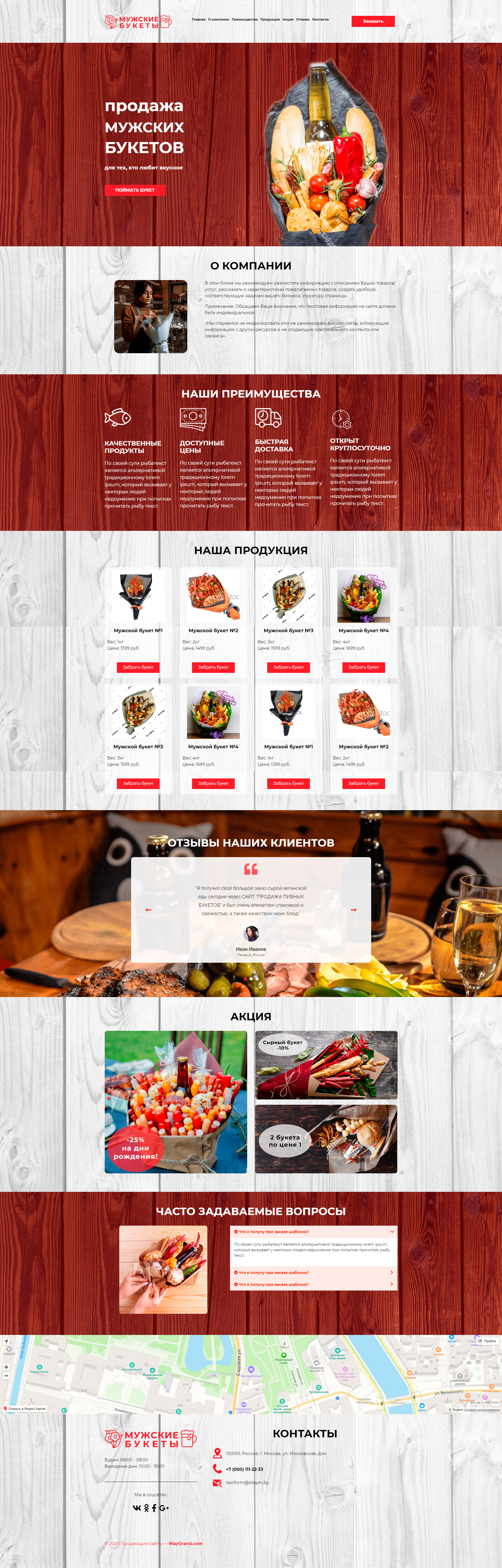Закажите готовый продающий сайт лендинг #2404204 в Червени за 1-3 дня «под ключ»: свёрстан, отрисован и готов к рекламе. Тематика шаблона «Мужские букеты».