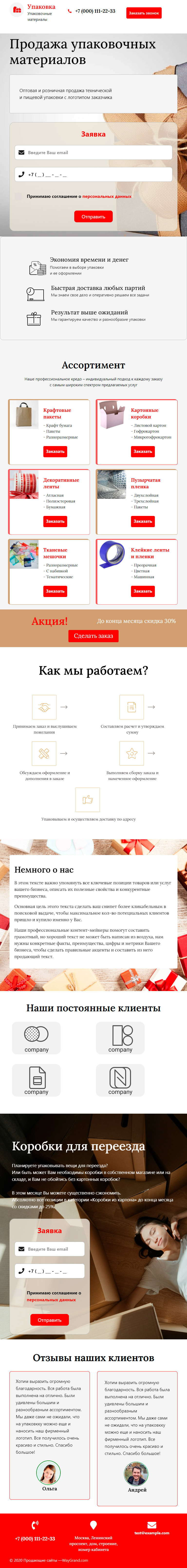 Закажите готовый продающий сайт лендинг #2627201 в Червени за 1-3 дня «под ключ»: свёрстан, отрисован и готов к рекламе. Тематика шаблона «Продажа упаковочных материалов».
