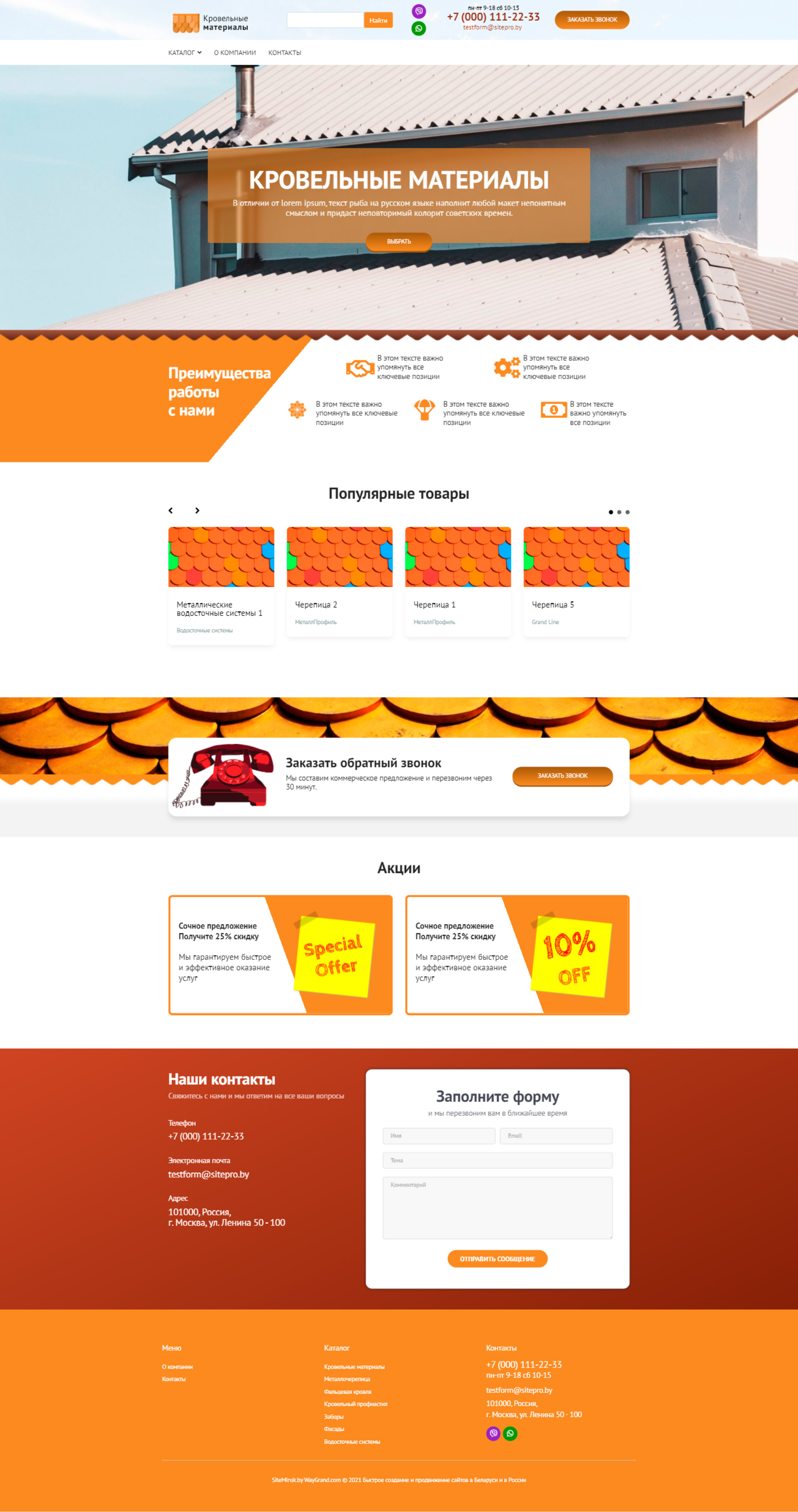 Закажите готовый продающий сайт визитка #2023402 в Червени за 5-7 дня «под ключ»: свёрстан, отрисован и готов к рекламе. Тематика шаблона «Кровельные материалы».
