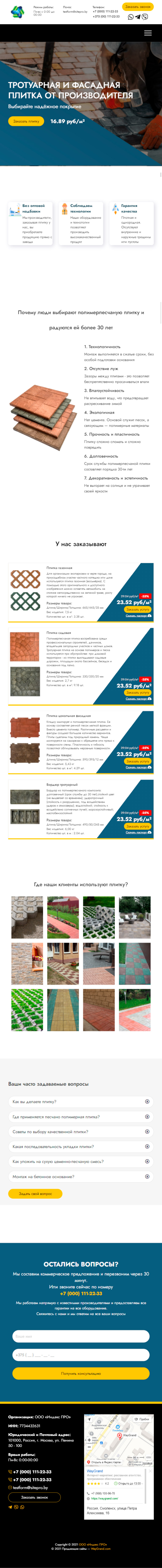Закажите готовый продающий сайт лендинг #2055202 в Червени за 1-3 дня «под ключ»: свёрстан, отрисован и готов к рекламе. Тематика шаблона «Тротуарная плитка».