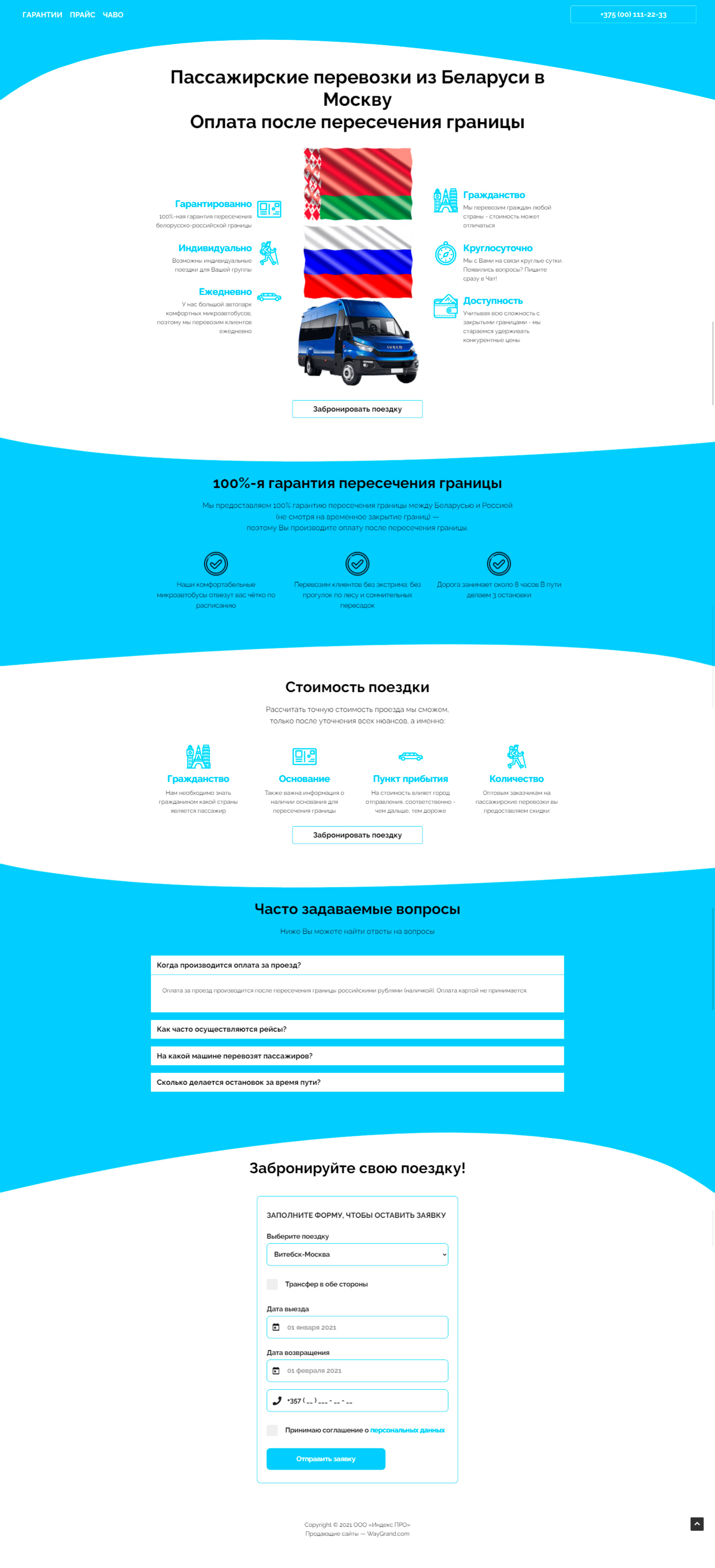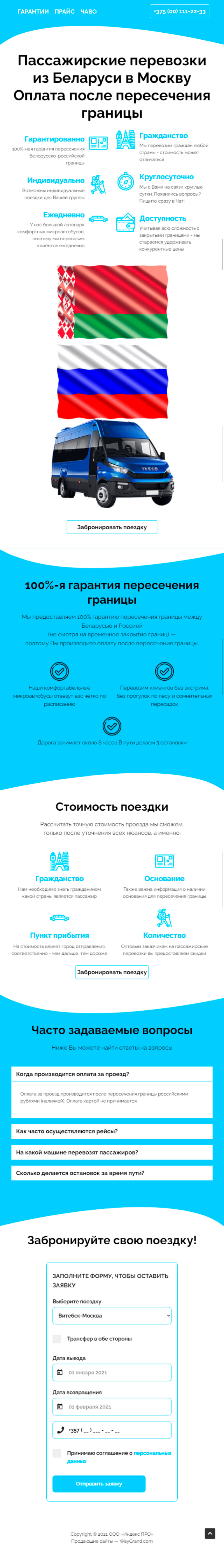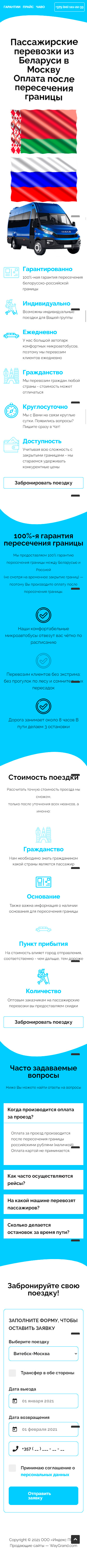 Закажите готовый продающий сайт лендинг #2528204 в Червени за 1-3 дня «под ключ»: свёрстан, отрисован и готов к рекламе. Тематика шаблона «Пассажирские перевозки из Беларуси в Москву».