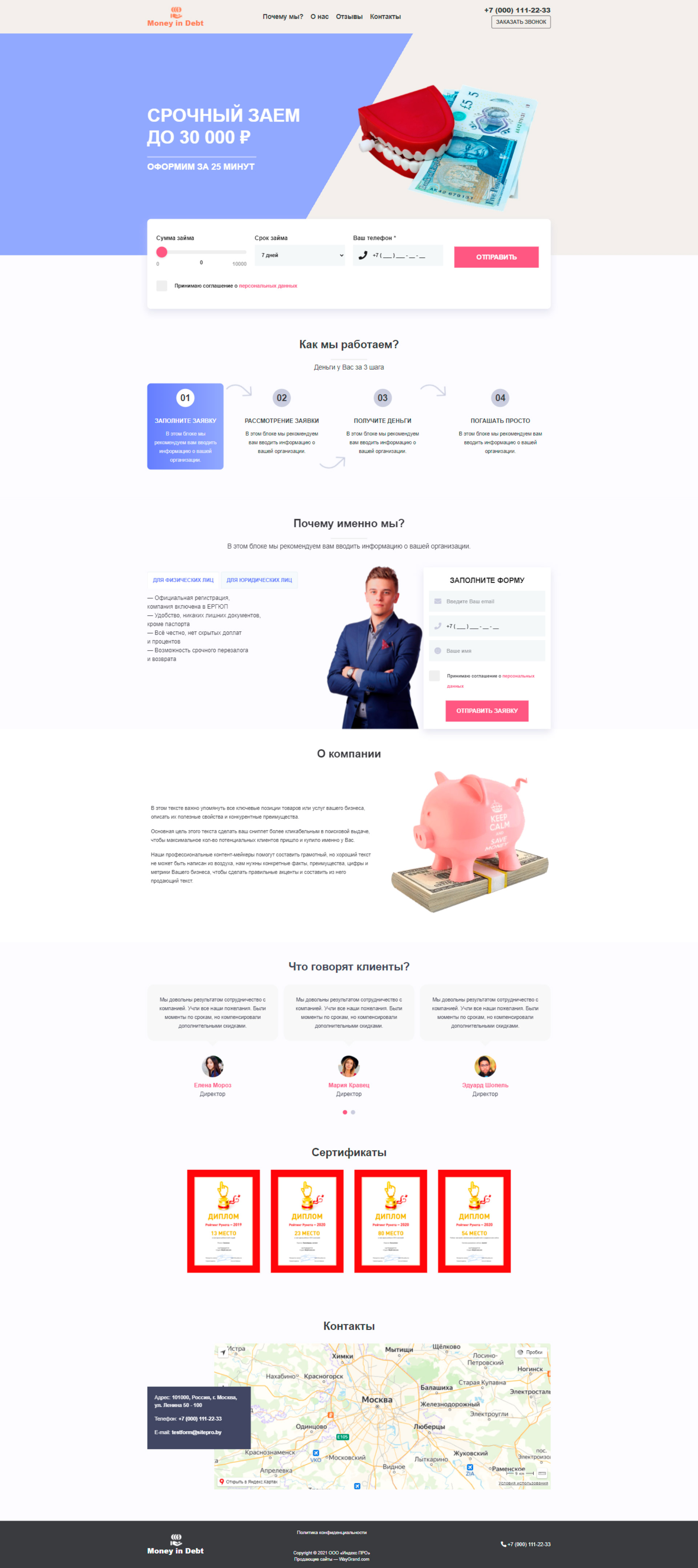 - Промоблок "Срочный заем" с формой "Отправить"