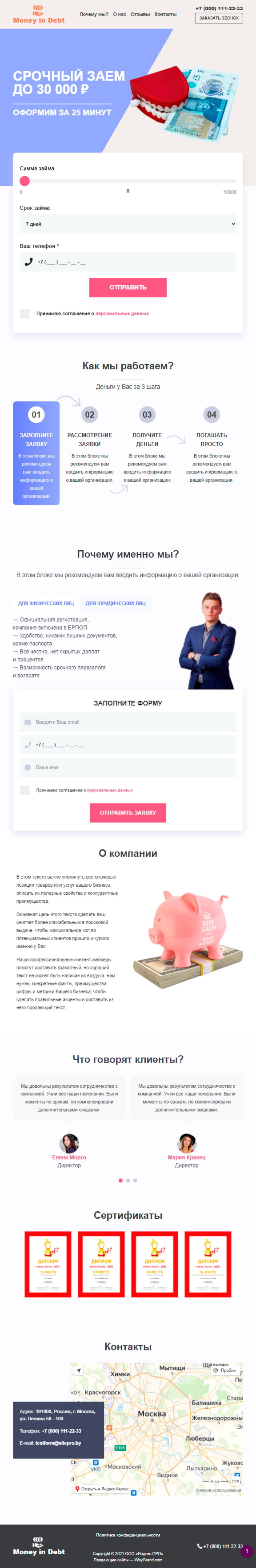 Закажите готовый продающий сайт лендинг #2825202 в Червени за 1-3 дня «под ключ»: свёрстан, отрисован и готов к рекламе. Тематика шаблона «Деньги в долг».