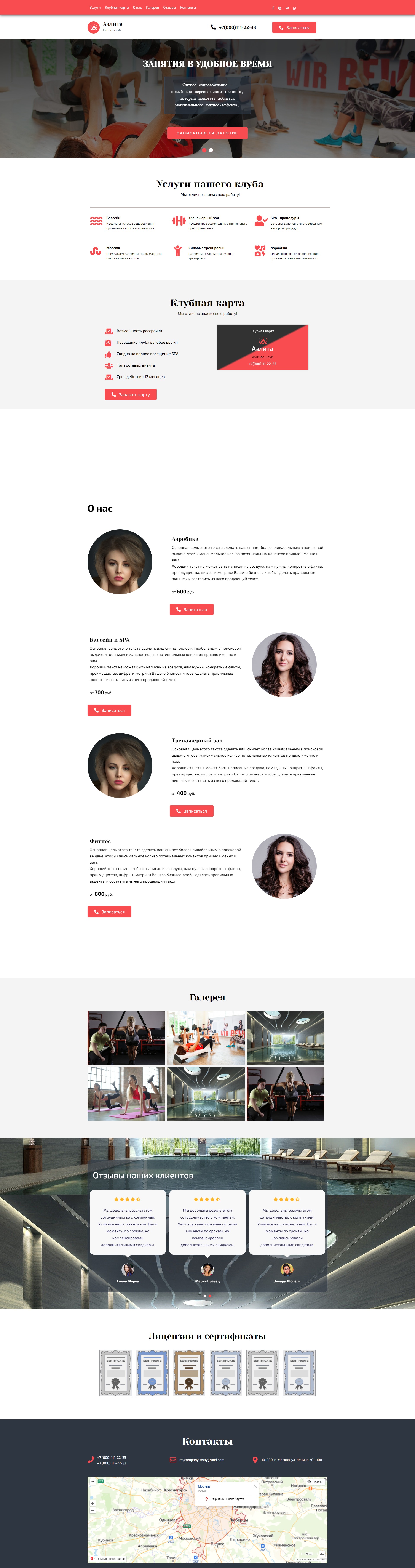 - Блок "Услуги нашего клуба"
