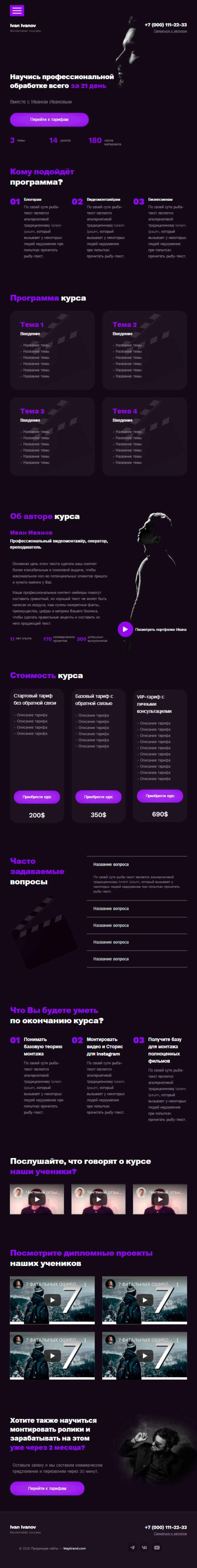 Закажите готовый продающий сайт лендинг #1467204 в Червени за 1-3 дня «под ключ»: свёрстан, отрисован и готов к рекламе. Тематика шаблона «Для курса видеомонтажа».