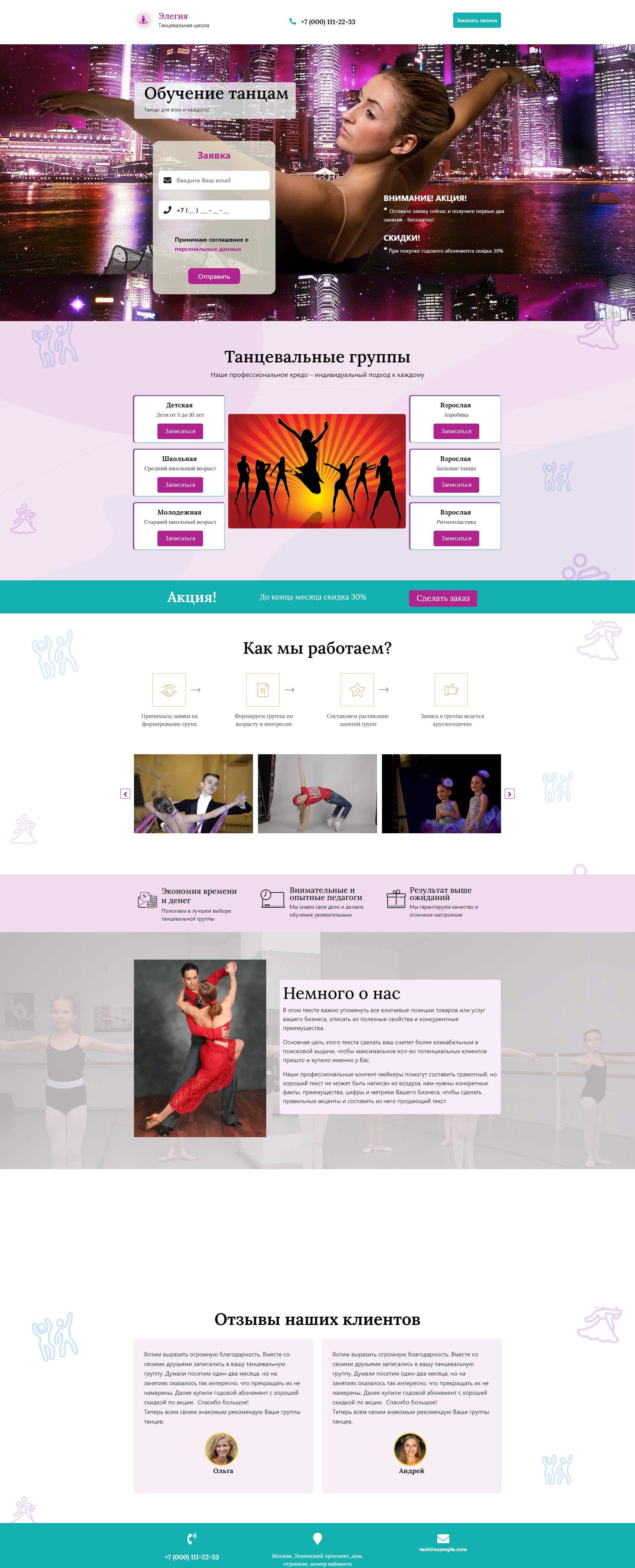 Закажите готовый продающий сайт лендинг #1923201 в Червени за 1-3 дня «под ключ»: свёрстан, отрисован и готов к рекламе. Тематика шаблона «Обучение танцам».