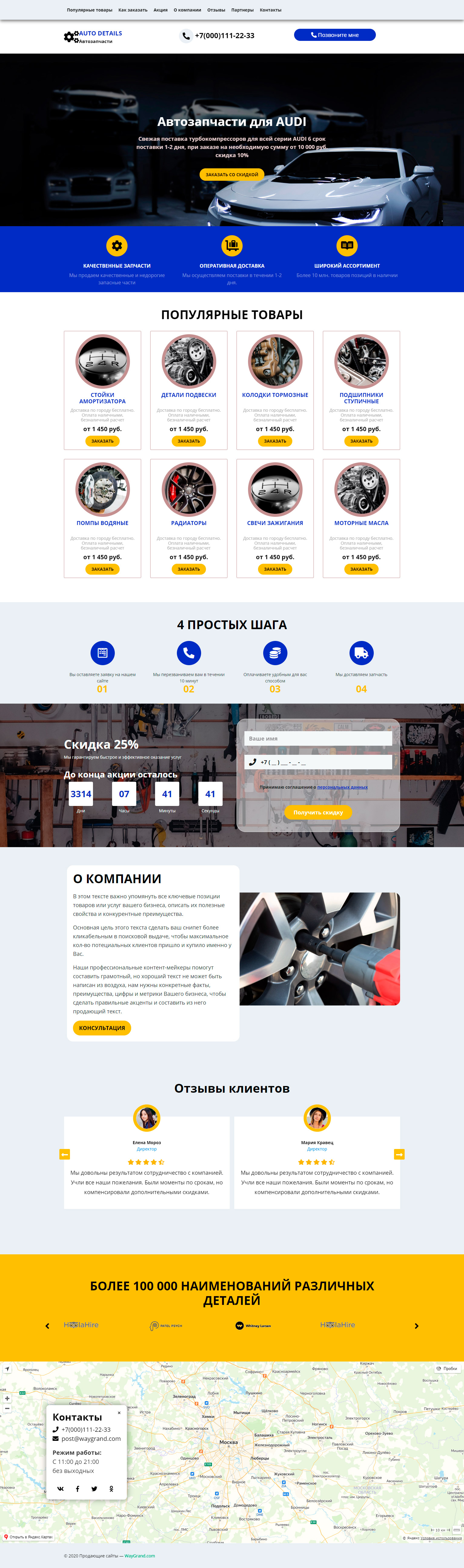 - Промоблок "Автозапчасти для AUDI" с кнопкой призыва к действию "Заказать со скидкой"