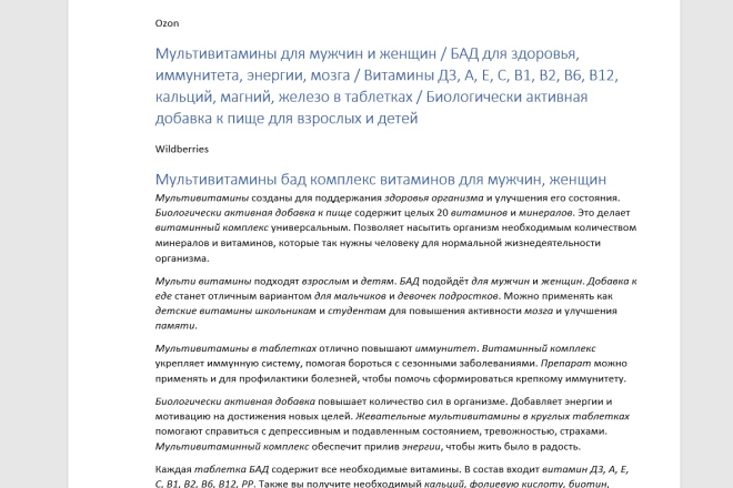 Профессионально сделаю продающее описание для карточки товара ✅ по всем требованиям маркетплейса OZON и Wildberries
