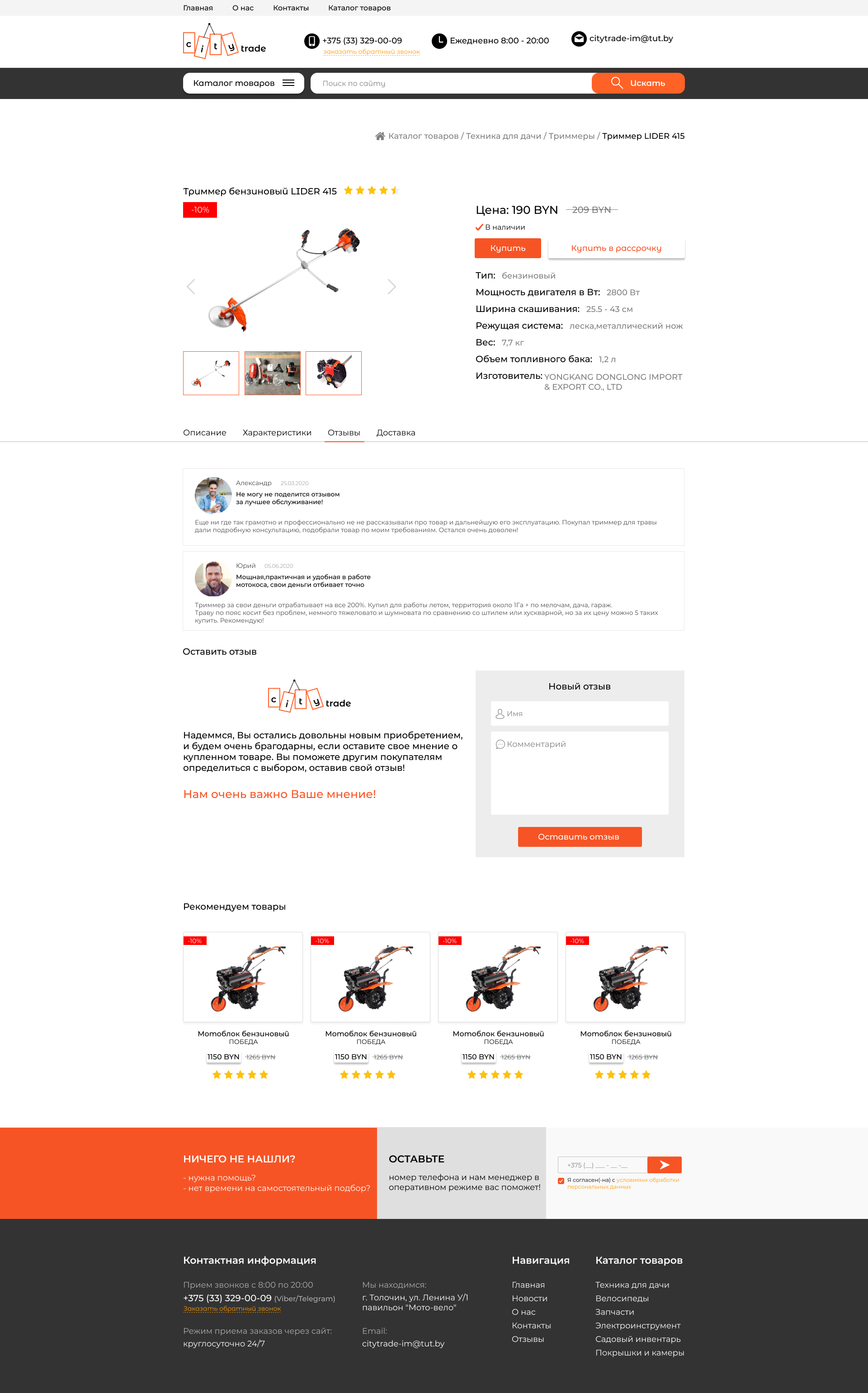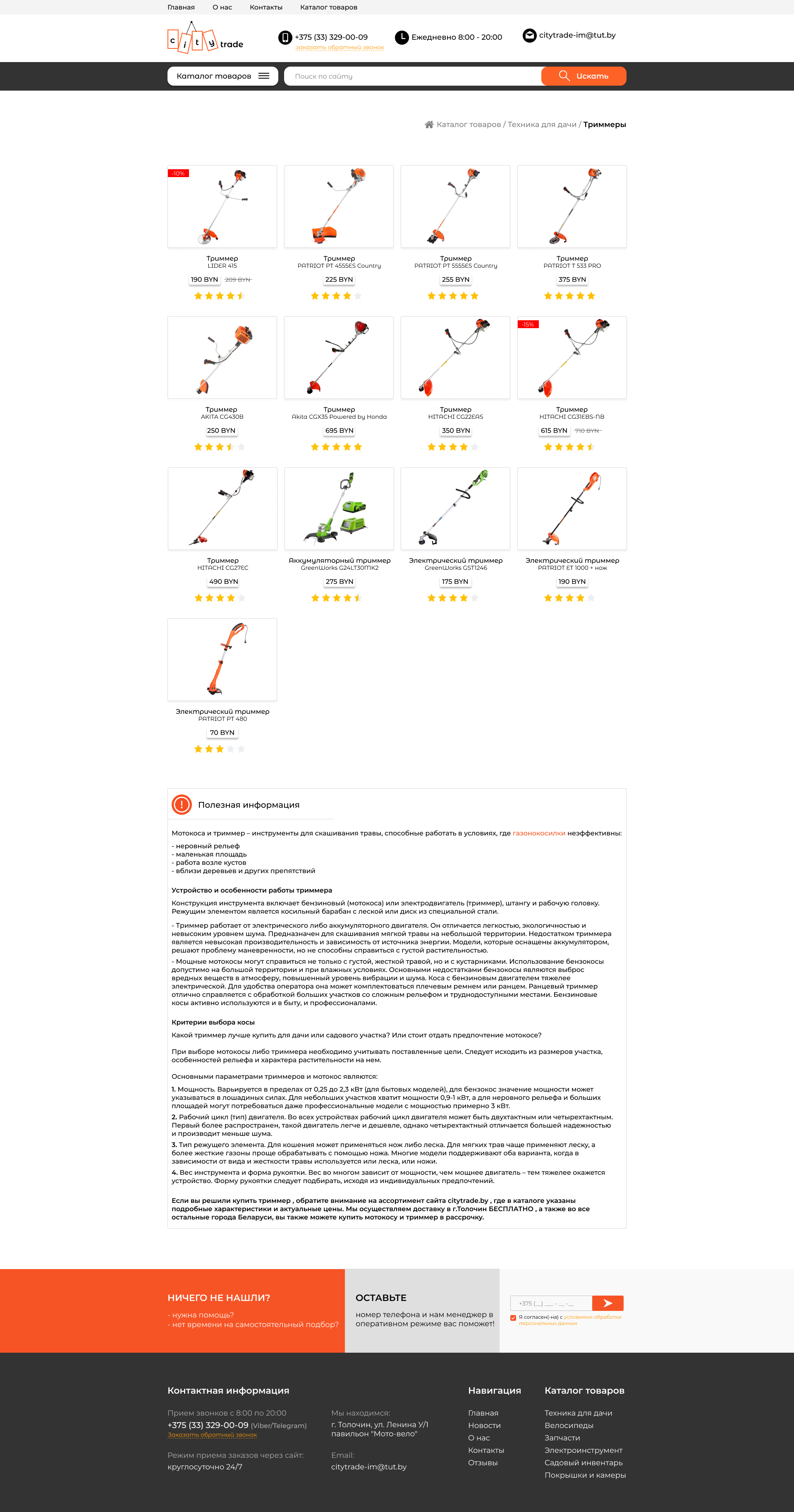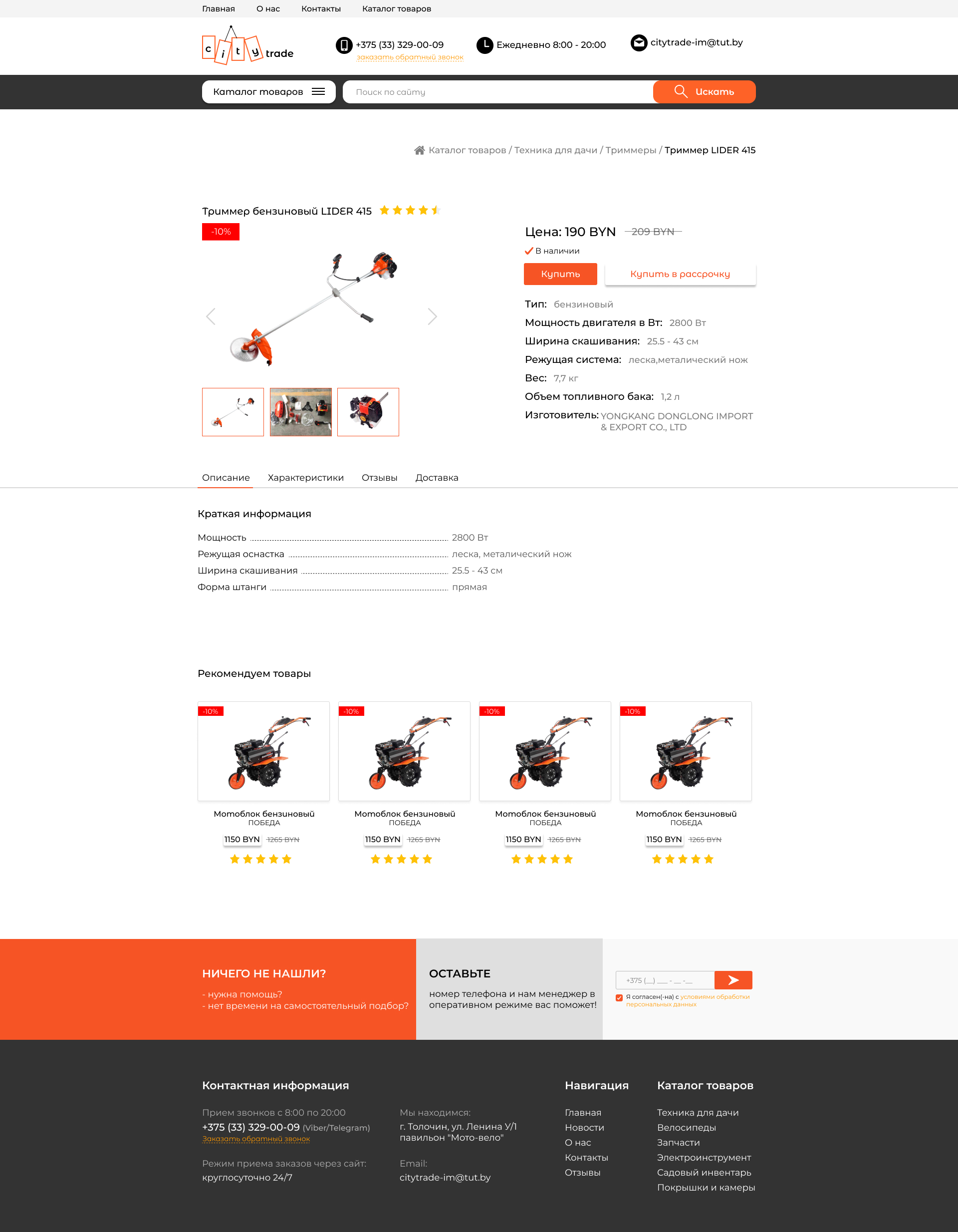 Закажите готовый продающий сайт визитка #281 в Червени за 5-7 дня «под ключ»: свёрстан, отрисован и готов к рекламе. Тематика шаблона «Розничная продажа садовой техники, велосипедов».