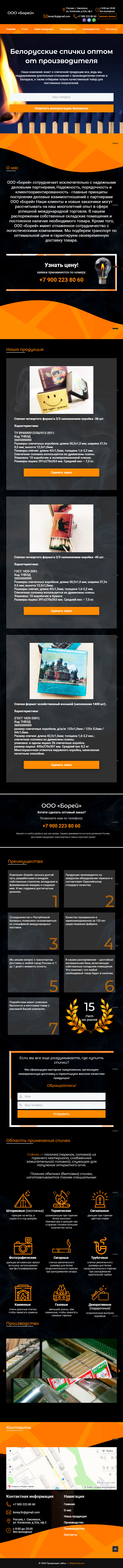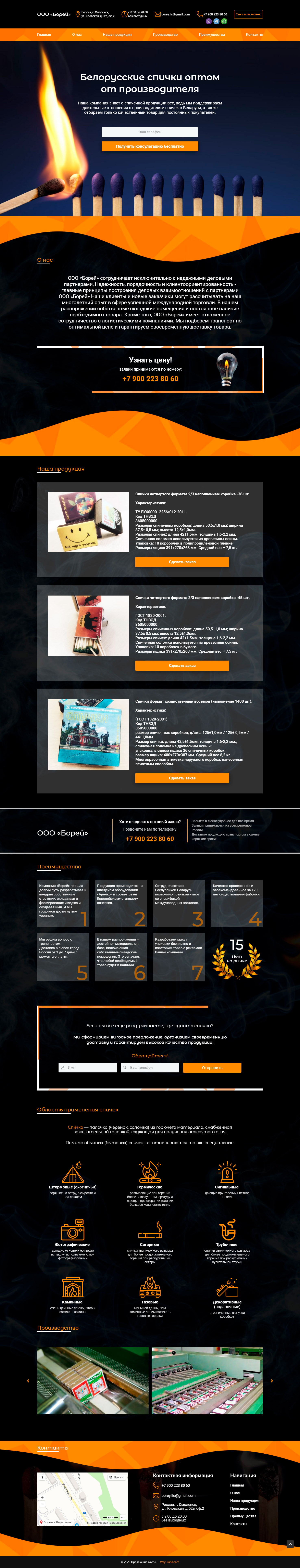 Закажите готовый продающий сайт лендинг #115 в Червени за 1-3 дня «под ключ»: свёрстан, отрисован и готов к рекламе. Тематика шаблона «Белорусские спички оптом от производителя».