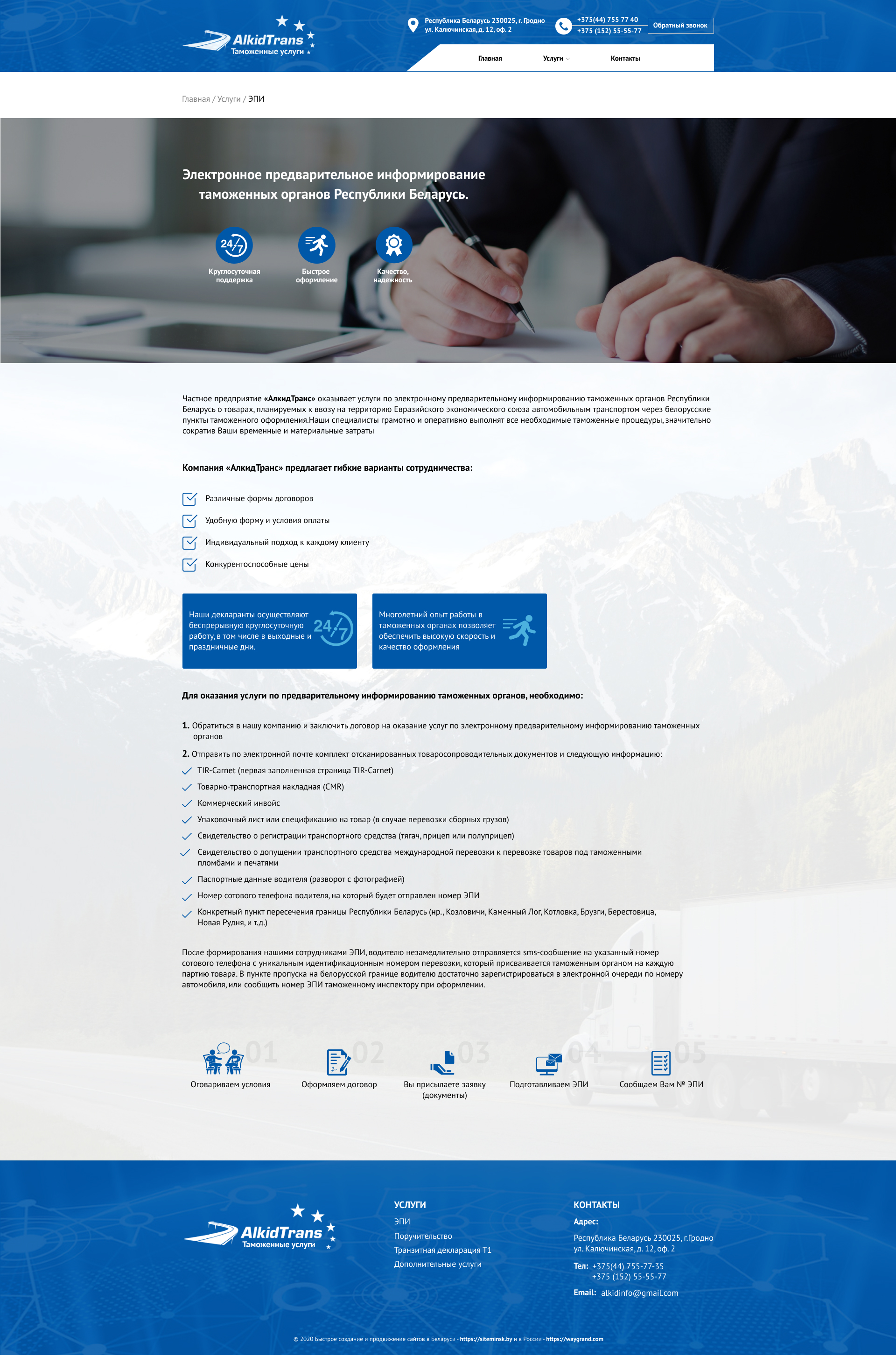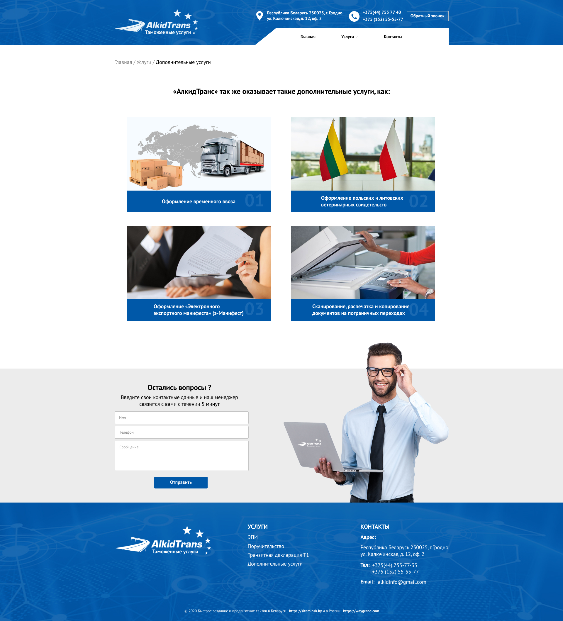 Закажите готовый продающий сайт визитка #234 в Червени за 5-7 дня «под ключ»: свёрстан, отрисован и готов к рекламе. Тематика шаблона «Таможенные услуги».